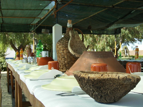 A mesa da cozinha dos ganhões era posta pelo abegão e pelo sota, que se sentavam cada um à sua cabeceira da mesa. A entrada dos ganhões na cozinha só se verificava depois do abegão ter bradado para o exterior: “Ao almoço!”, ”À ceia!” ou “Ao jantar!”, conforme a refeição de que se tratava. A malta acudia logo à chamada, tirava o chapéu e sentava-se à mesa sempre no mesmo lugar. O que era para comer já tinha sido previamente vazado pelo abegão e pelo sota, em grandes alguidares, conhecidos por “barranhões”. Só faltava migar as sopas de pão, o que cada um fazia puxando da navalha que trazia consigo. Lá diz o adagiário: "Sopa de ganhão, cada três um pão."