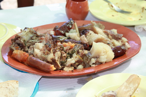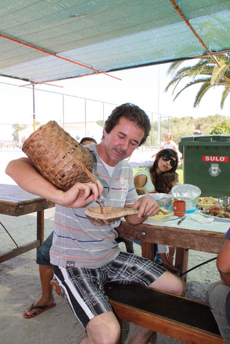 Amolecidas as sopas, o abegão dava ordem de comer, soltando um “Com Jesus!”. De cada barranhão comiam quatro a seis ganhões, cada um dos quais metia sempre a colher no mesmo local do barranhão, já que "Não há guerra de mais aparato que muitas mãos no mesmo prato."